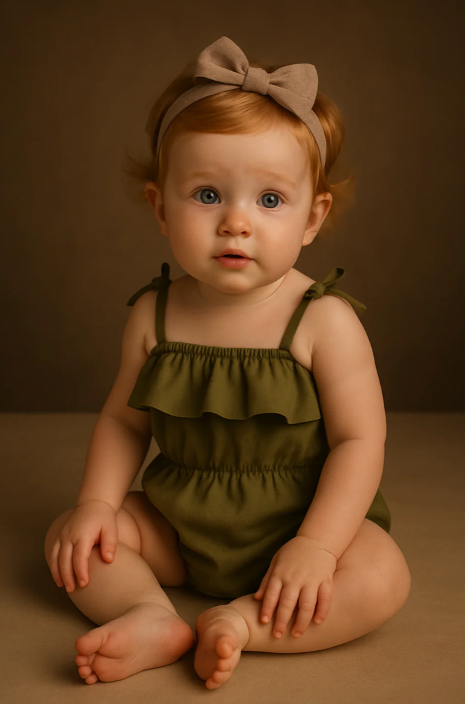 - Matching bloomers in olive green and sunshine yellow for cozy style