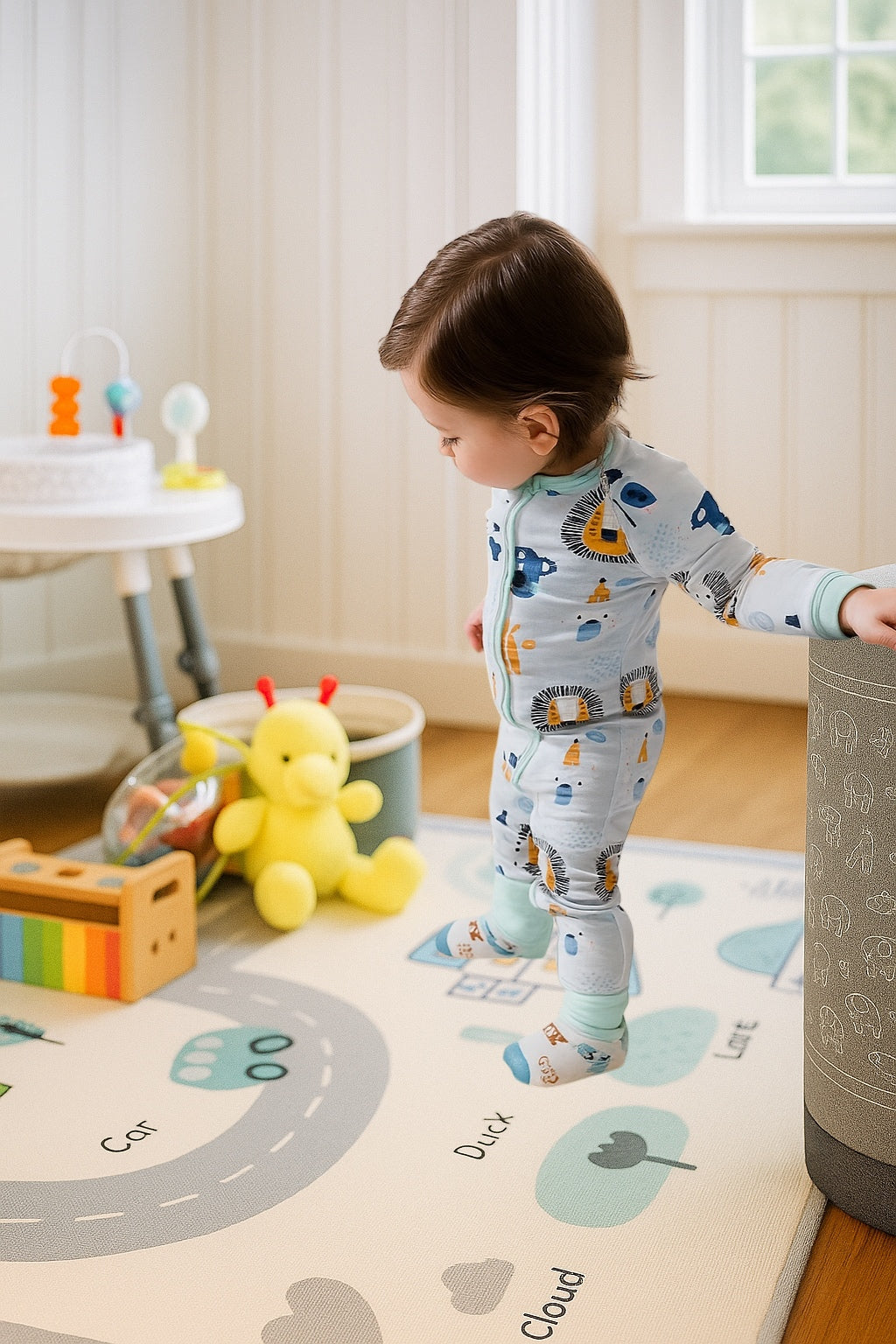 Crafted from buttery soft bamboo, our signature fabric is designed to bring comfort and ease to every moment from playful mornings to peaceful bedtimes. Thoughtfully made with baby’s needs in mind, our designs offer gentle support for sensitive skin, easy changes, and cozy versatility.