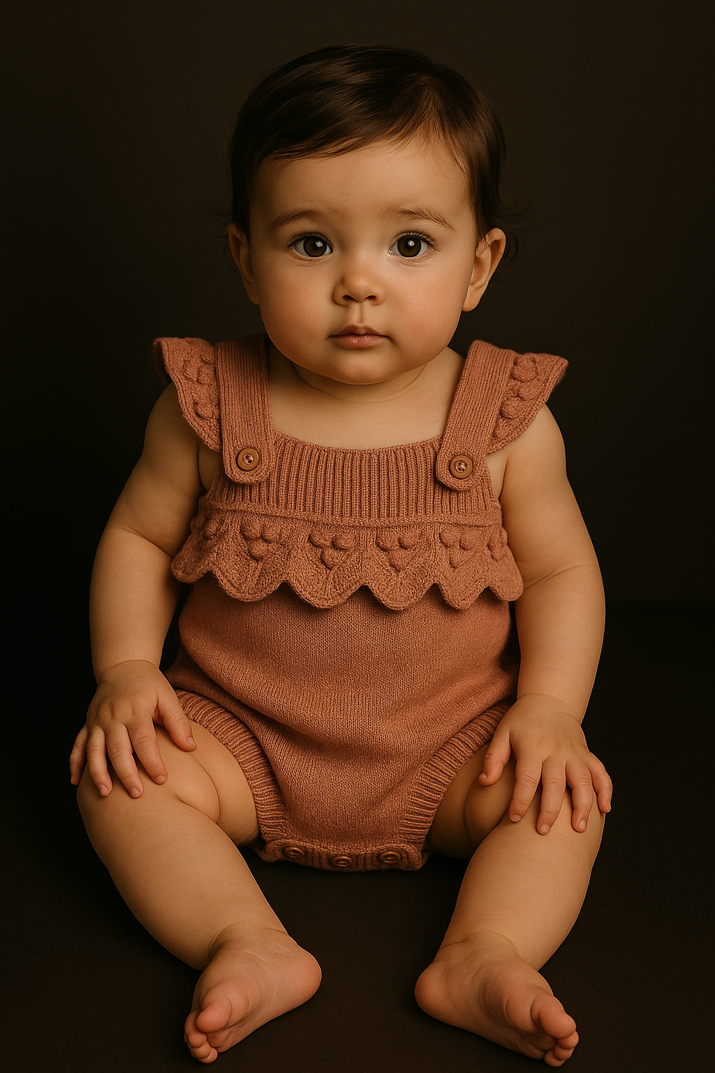 Dress your baby in sweet sophistication with our Blush Petal Knit Baby Romper. Featuring adorable ruffled flutter straps and intricate floral knit detailing along the top, this romper blends elegance with comfort. Made from soft, breathable knit fabric, it includes bottom buttons, stretchy fit to keep your little one cozy all day.